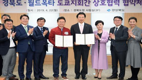 ÀÌö¿ì °æºÏµµÁö»ç¿Í °£ºÎ °ø¹«¿ø, ¿ùµå¿ÁŸ µµÄìÁöȸ Á¶Áø¸¸ ȸÀå°ú ¼Û¼±È ÀÌ»çÀåÀ» ºñ·ÔÇÑ µµÄìÁöȸ ȸ¿ø,