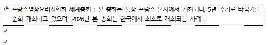 À̹ø ¹æ¹®Àº 3¿ù 15ÀϺÎÅÍ 21ÀϱîÁö ¿­¸®´Â 2026³â ÇÁ¶û½º¸íÀå¿ä¸®»çÇùȸ(MCF) ¼¼°èÃÑȸ*ÀÇ °ø½Ä ÇÁ·Î±×·¥ ÀÏȯÀ¸·Î ¸¶·ÃµÆ´Ù. ÃÑȸ¿¡ Âü°¡ÇÑ ¼¼°è °¢±¹ÀÇ ÇÁ¶û½º ¿ä¸® ¼ÎÇÁµéÀÌ ±¹³» ÁÖ¿ä ¼ö»ê¹° ½ÄÀç·á »ý»êÁö¸¦ ¹æ¹®ÇÏ´Â ÀÏÁ¤ÀÌ´Ù.